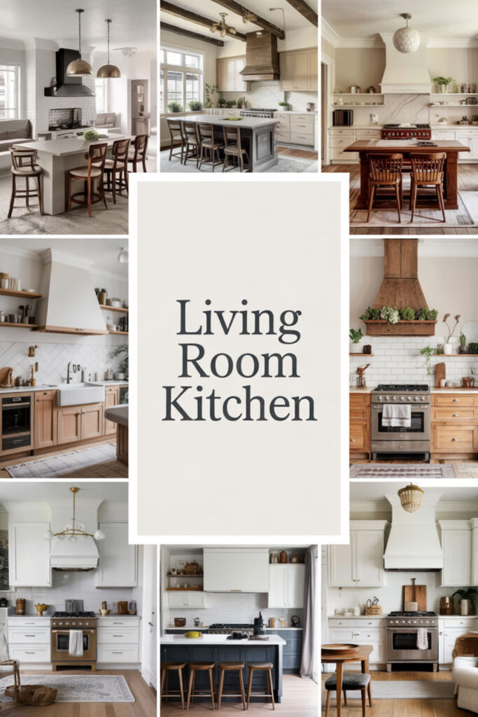 A living room kitchen combo ideas layout creates unified space that feels generous rather than divided. Use furniture placement to suggest zones without walls – a console table, a change in flooring, different lighting.