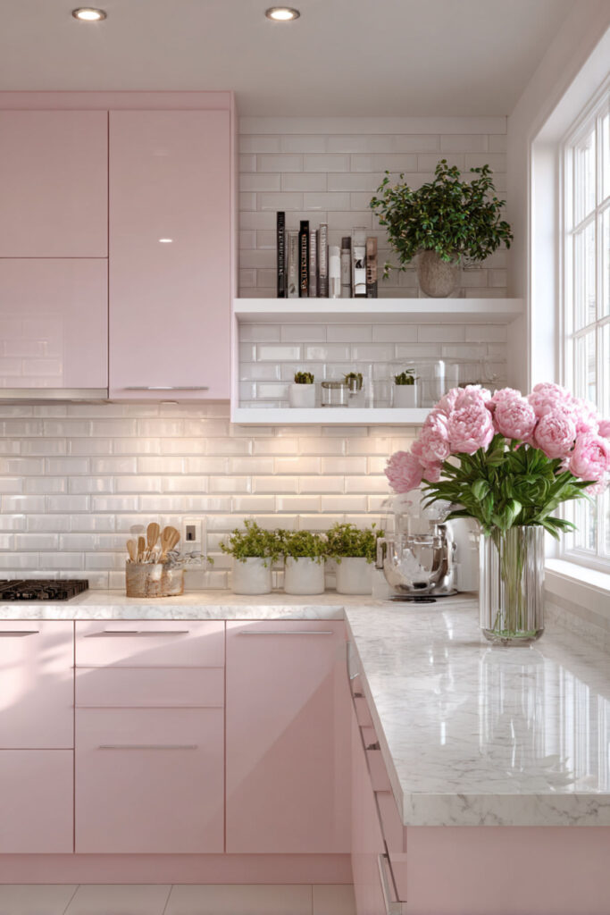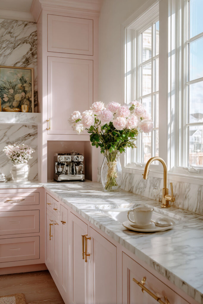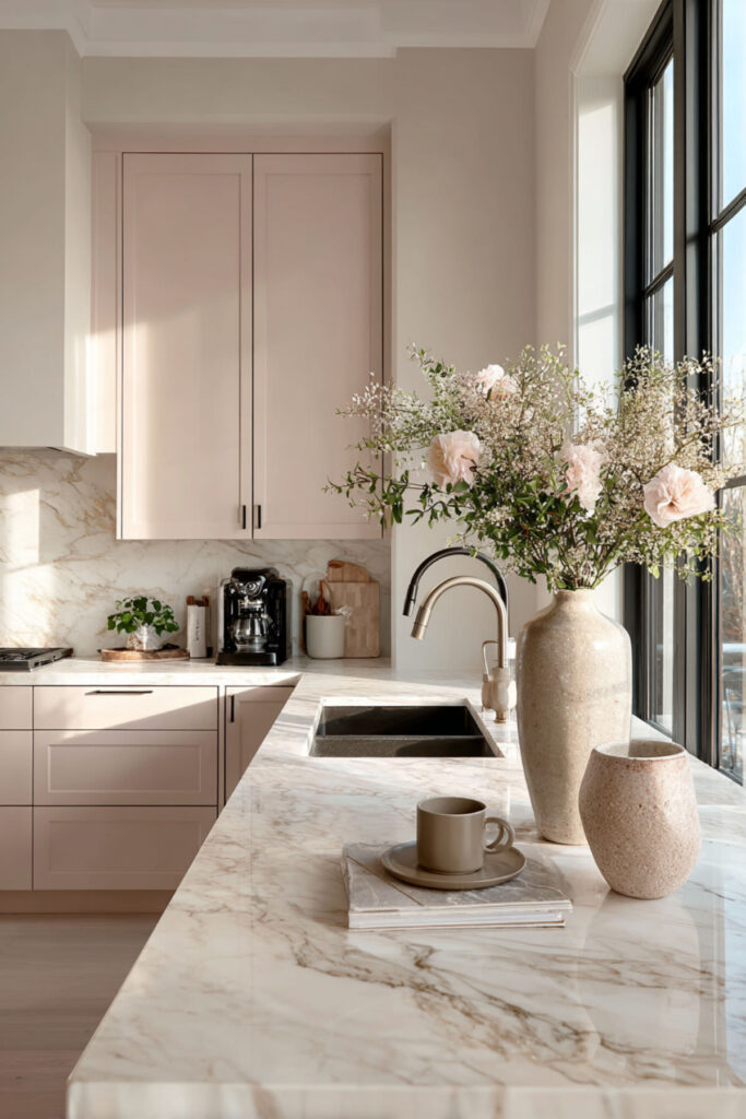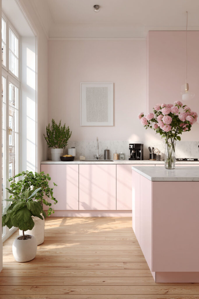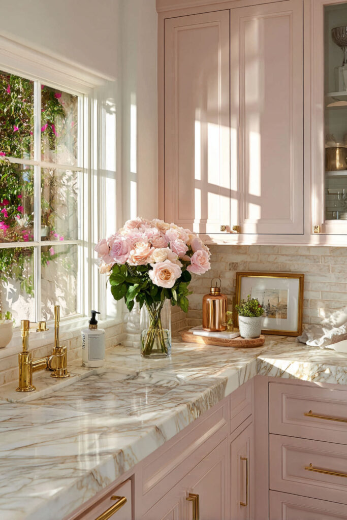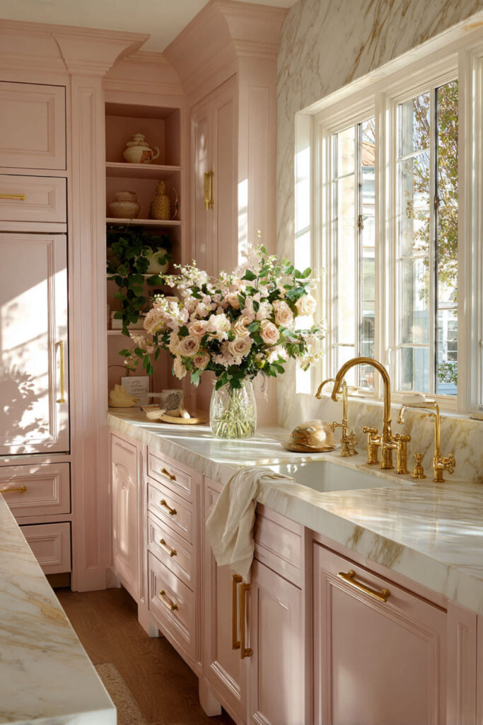 Soft Pink Kitchen Cabinets That Catch Morning Light