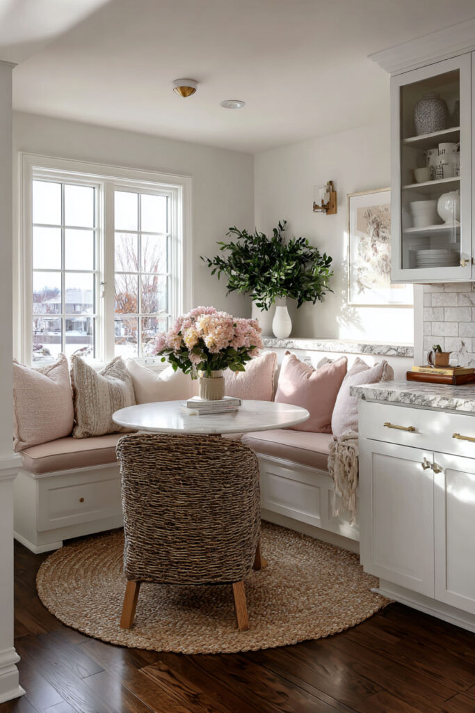 Pale Pink Kitchen With a Breakfast Nook Corner