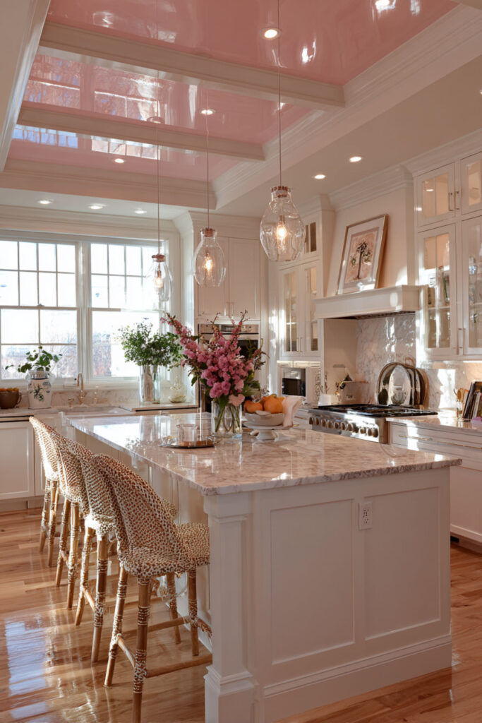 Soft Pink Kitchen Ceiling for Overhead Warmth