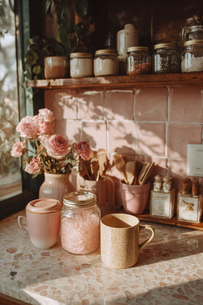 I recommend choosing your soft pink based on how it looks in your kitchen’s actual light — not in the paint store, not online, but on your wall, at different times of day. Paint a sample and watch it for a week. See it at dawn. See it at noon. See it in the evening with the overhead lights on. The right pink will look different at every hour and beautiful at all of them. That’s the test. And when you find it — when the light hits the pink and the room exhales — you’ll know. That’s your color. That’s your corner. That’s your calm.