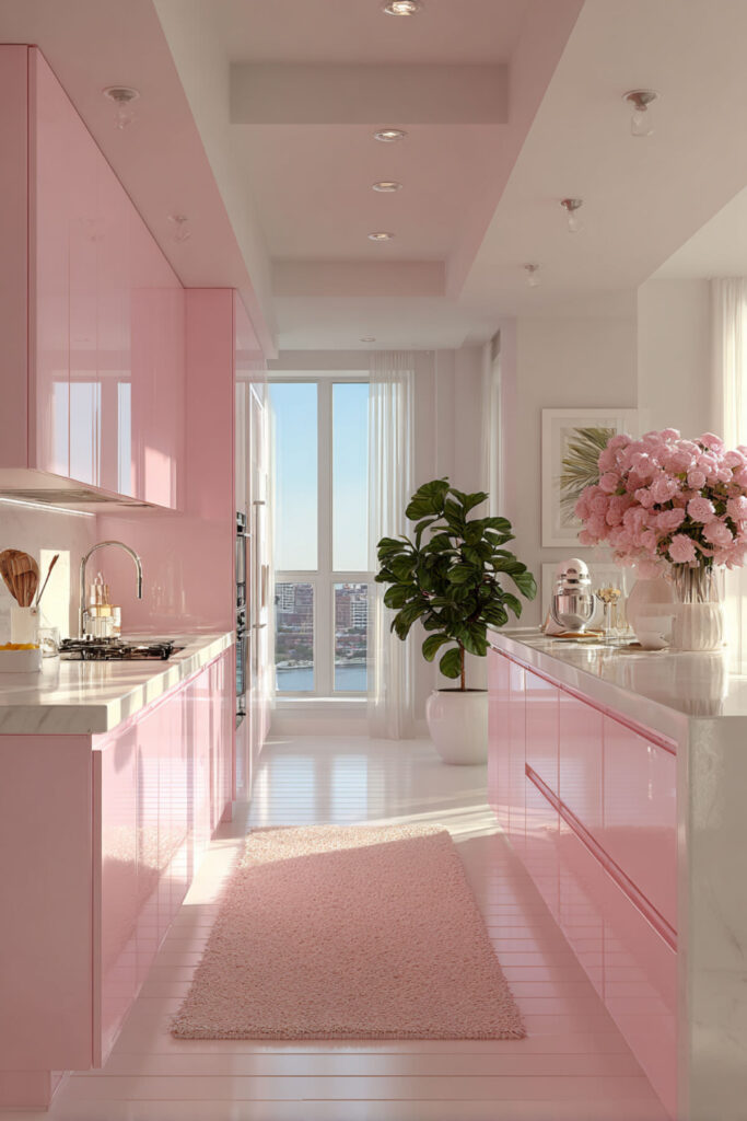 And here’s the final idea — the one that underlies this entire list. In a soft pink kitchen, the real design material isn’t paint or tile or marble. It’s light. Every pink surface in the room exists to catch, warm, and redirect light — turning harsh rays into soft glows, turning cool mornings into golden ones, turning an ordinary kitchen into a room that feels like it’s wrapped in warmth. The pink is the instrument. The light is the music. And when the two work together — in a corner by the window, on a wall behind the sink, across a row of cabinets that catch the sunrise — the kitchen becomes something more than functional. It becomes the most beautiful room in the house. Not because of what’s in it. Because of how it feels to stand in it.