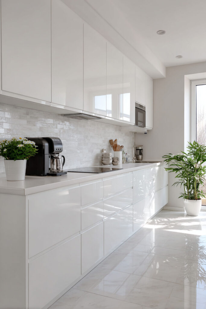 A minimalist layout reduces visual stimulation when sensory overload is common. Clear counters except for one beautiful bowl, one perfect plant. Handleless cabinets create clean lines that don’t snag clothing or create visual chaos. Everything hidden but organized inside. This isn’t about deprivation – it’s about reducing the visual noise that increases cortisol.