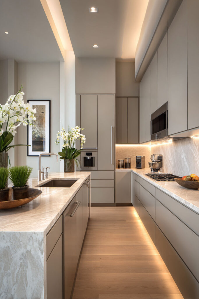 Start with one change that would bring immediate relief. Maybe it’s adding seating where you need it most, or improving lighting for those early morning wake-ups. Small adjustments can dramatically impact how you feel in your space. Discover these modern minimalist kitchen décor ideas created for midlife women who want the calm beauty of quiet luxury at home.