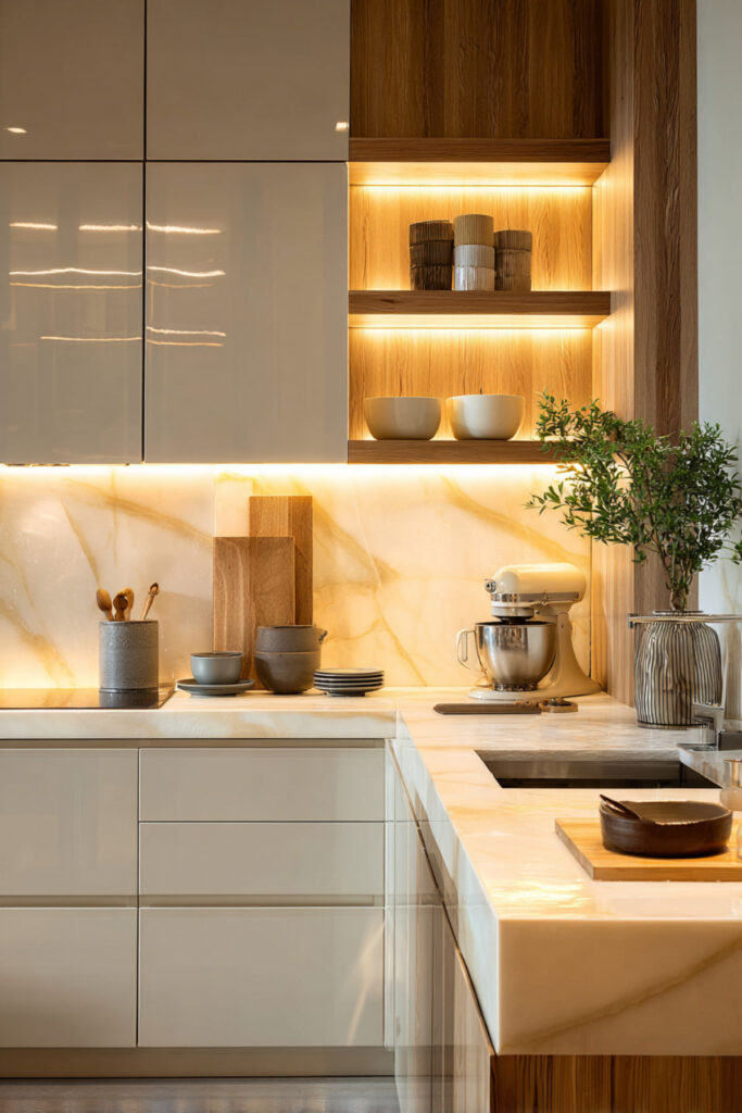 Warm White Kitchen With Soft Lighting for Evening Rituals